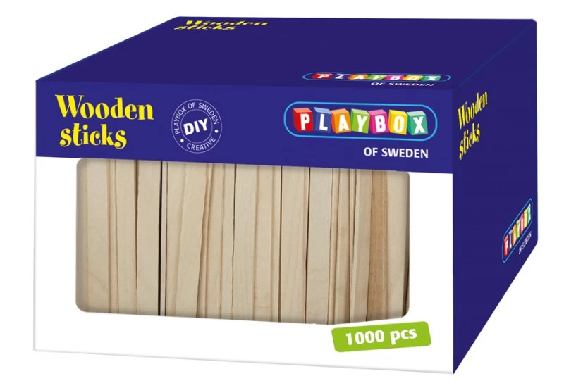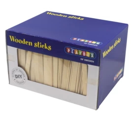Doos met 1000 ijsstokjes van ongekleurd hout.
