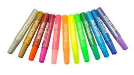 Set met 12 tubes gliterlijm in verschillende kleuren.