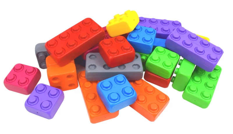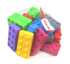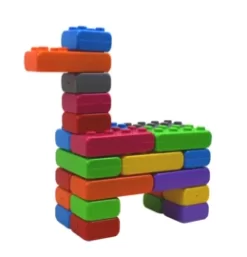 De blokken bouw je op elkaar als lego, of duplo. Maar ze zijn een stuk groter! De grote blokken zijn 11cm lang, 5,5cm breed en 3,5cm hoog. daar kan je dus echt indrukwekkende bouwwerken van maken.