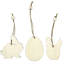 Je krijgt een setje van 3 in de vorm van een kip, een konijn en een ei.