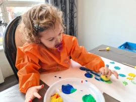 Maar ze zijn ook bijzonder geschikt voor hele kleine kinderen om mee te stippelen! Gewoon met plakkaatverf.