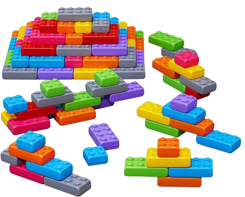 Zak met met 60 bouwblokken van licht kunststof.