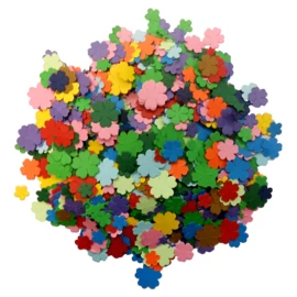 Zak met bloem figuurtjes van dik papier. De bloemetjes hebben verschillende maten variërend van van 15 tot 28 mm. En natuurlijk in heel veel verschillende kleuren.