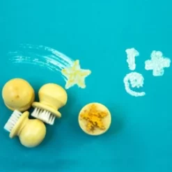 Set van 4 borstelstempels in de vorm van een kruis, een ster, een streep en een spiraal.