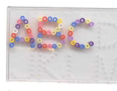 Setje van 2 pinbordjes met in totaal alle letters van het alfabet en de cijfers 0 t/m 9. Zo kan je bijvoorbeeld je eigen naam maken van strijkkralen.