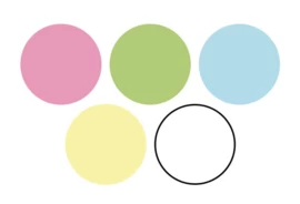 In de pot met pastelkleuren zitten 5 staven klei in de kleuren wit, felgeel, knalroze, lichtblauw en lichtgroen.
