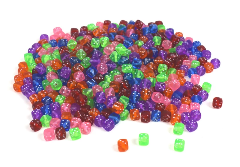 Grote zak met kralen in de vorm van dobbelsteentjes!