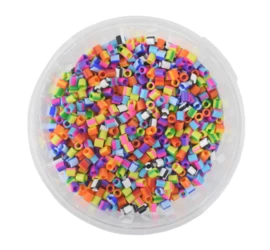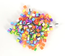 Alle strijkkralen in deze emmer hebben een streepjesmotief met 2 kleuren. Hierdoor zien ze er extra vrolijk uit.