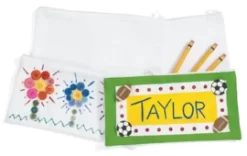 Leuk om te versieren met textielstiften! En je kan er ook glittertjes zoals strass-steentjes en pailletten op plakken om hem extra mooi te maken.