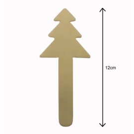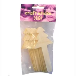 Setje van 10 houten kerstboompjes op stok, met een lente van 12cm. Je kan de kerstboompjes kleuren, verven en beplakken.