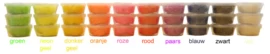 Je kan het combineren met strass steentjes (zoals op de foto van het doosje). En bij de laatste foto zie je goed dat ook de zwarte klei zeker de moeite waard is omdat die prachtig contrasteert met de felle kleurtjes.