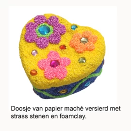 Je kan echt heel veel verschillende dingen versieren met deze klei. In de voorbeeldjes zie je een houten fotolijstje, en een houten kralenketting. Maar ook vormen van piepschuim, papier maché en karton zijn hier heel erg geschikt voor.