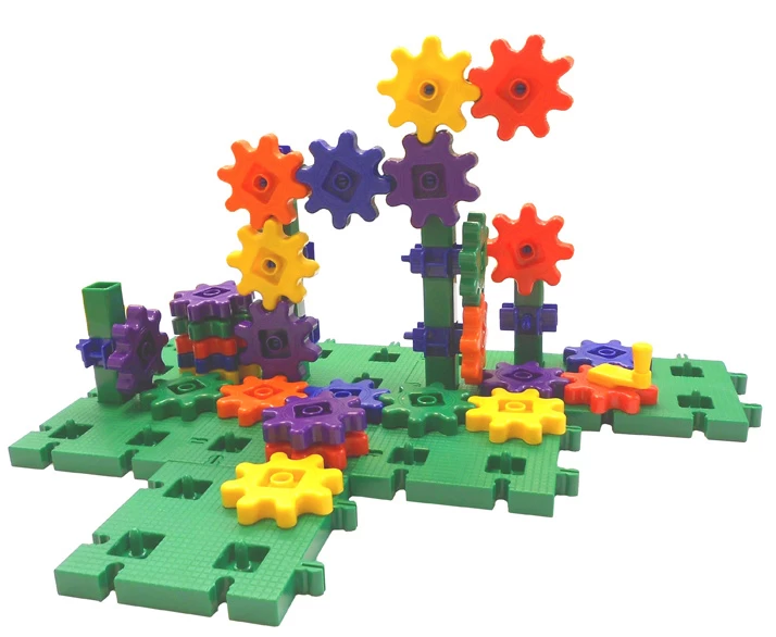 Er zitten zoveel tandwielen bij dat je echt een heel groot, bewegend bouwsel kan maken.
