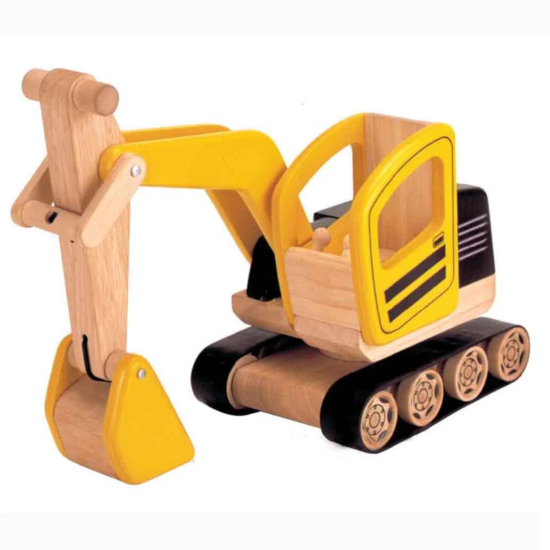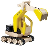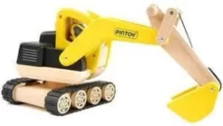 Deze graafmachine heeft een beweegbare arm en als je in het scharnier knijpt dan schept hij het ook nog echt op!