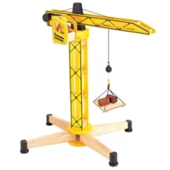 Een 2 knops bediening laat de vracht hijsen of zakken en ook horizontaal over de giek verplaatsen. De kraan heeft een heel stevige stabiele basis, zodat je er lekker echt mee kunt spelen.