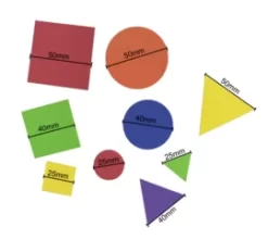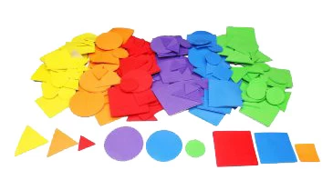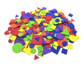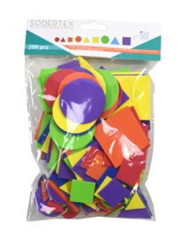 Zak met wel 200 rubberfoam stickers in geometrische vormen en vrolijke kleuren.