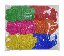Grote, zelfklevende bloemen van Glitter Foam (hobbyrubber).