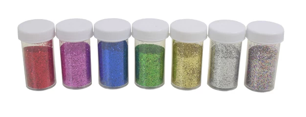 Potje vol met strooiglitter. Eenvoudig te plakken met lijm (kinderlijm, hobbylijm, of plaksel)