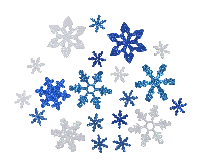 Prachtig glitterende sneeuwvlokken gemaakt van EVA foam (rubberfoam).