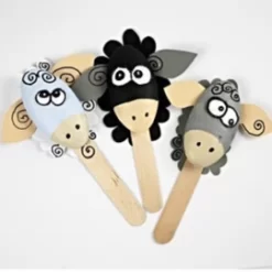 De schaapjes in het derde plaatje zijn gemaakt van grote ijsstokjes met daarop een half piepschuim ei.