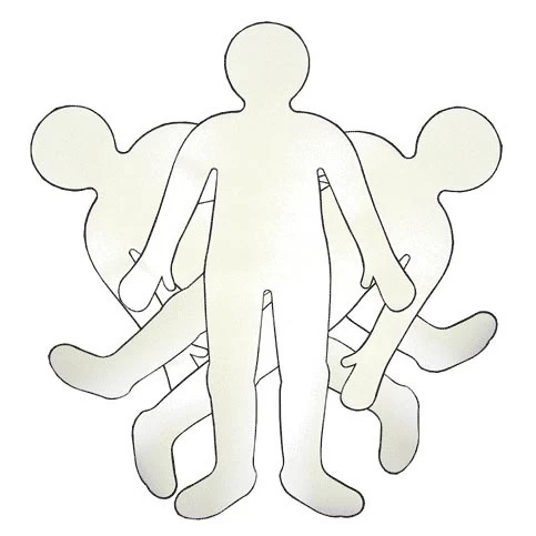 Set met 24 papieren mensfiguren op levensgroot kindformaat. De figuren hebben een lengte van 90 cm.