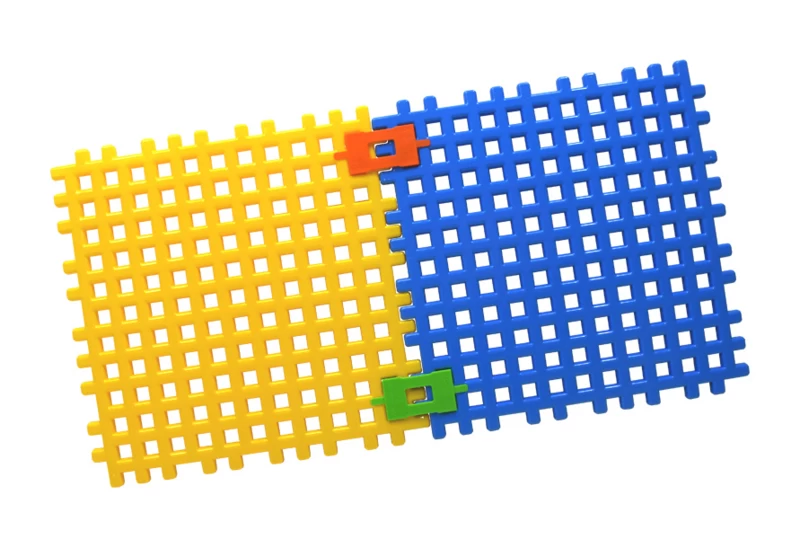 Je kan de grondplaten ook aan elkaar vastzetten. Ze schuiven net als de wafelblokken in elkaar. En om zeker te zijn dat ze niet losraken kan je ze dan nog vastzetten met een connector; die verkopen we los.
