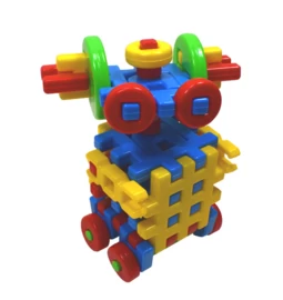 Superleuke en complete set van grote wafelblokken met extra onderdelen zoals wielen (die ook voor de ogen gebruikt worden).