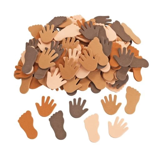 Zak met handjes en voetjes van EVA foam in 4 verschillende huidskleuren.