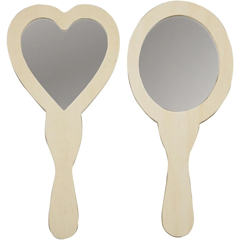 De spiegels zijn 23 cm lang en worden geleverd als hartje en als ovaal. Deze modellen worden altijd door elkaar geleverd! Dat betekend dat als je er 2 bestelt, je dus zowel een hartje als een ovaal krijgt.