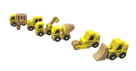 De auto’s hebben bewegende onerdelen. Natuurlijk kunnen ze rijden, maar de graver kan ook op en neer en de kiepwagen en de takel, enz.