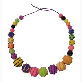 De kralen zijn van blank, ongelakt hout en dus indien gewenst nog eenvoudig te verven of versieren.