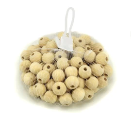 Zak met 100 houten kralen met een diameter van 20 milimeter.