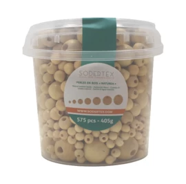 Er zitten 7 verschillende maten kralen in waarvan de grootste 25mm is.
