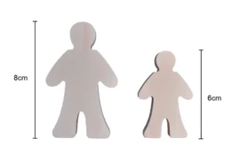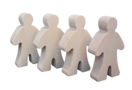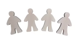 De poppetjes zijn gemaakt van blank, onbewerkt hout en dik genoeg om zelfstandig te staan.
