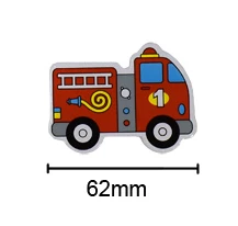 Echt grote, houten kralen in de vorm van vrolijk gekleurde autootjes.