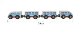 Geschikt voor de houten treinbanen van alle bekende merken zoals Brio, Sio, Eichhorn, Ikea en Hema.