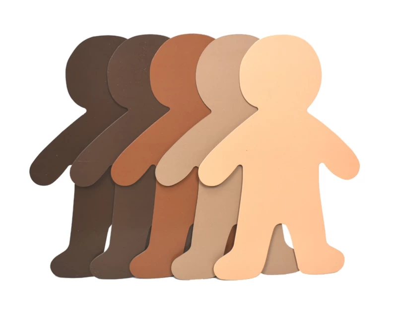 Set van 24 mensjes van stevig karton in 5 verschillende kleuren.