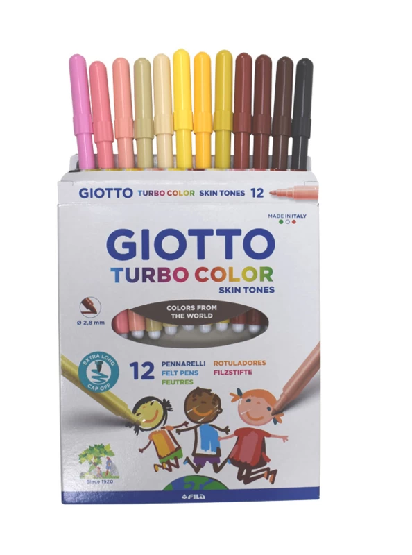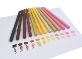 Set van 12 viltstiften in verschillende huidskleurtinten.