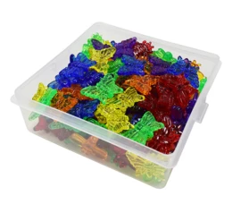 Prachtige set met 120 transparante insecten in 6 verschillende kleuren.
