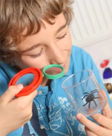 De deksel van het insectenpotje is een vergrootglas en daar zit nog een extra vergrootglas bovenop. Dan kan je je beestjes echt heel goed bekijken.