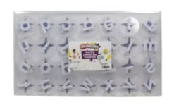 Het zijn grote stempels met een flinke knop als handvat. Daardoor zijn ze ook voor kinderen makkelijk vast te pakken en krijg je niet snel vieze handen.