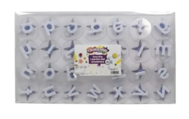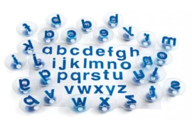 Stempelset van het complete alfabet in schrijfletters (dus geen hoofdletters).
