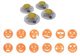 Elke stempel heeft een gezichtje met een andere, duidelijk herkenbare emotie.