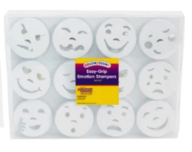 Set van 12 hele grote emotie stempels met grote knoppen om ze makkelijk vast te pakken.