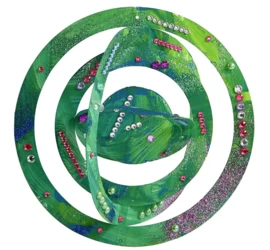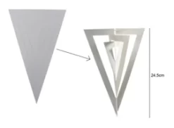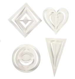 Leuk! Deze grote, platte vormen vouw je alle kanten op (eerst een randje naar voren vouwen, volgende randje niet vouwen, dan een randje naar achteren vouwen) en daardoor worden het hele grote en speelse ornamenten.