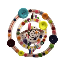 Aan de bovenkant van de figuren zit een klein gaatje waar je een koordje door kan doen om hem op te hangen.