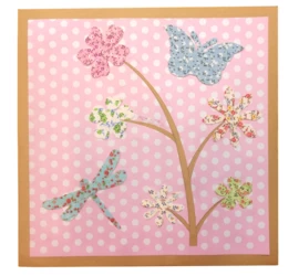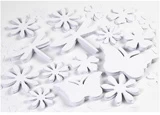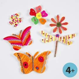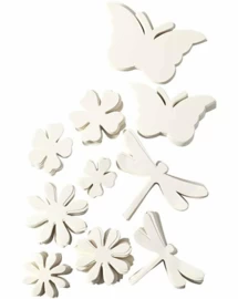 Zakje met wel 71 kartonnen figuren in de vorm van bloemen, vlinders en libellen.