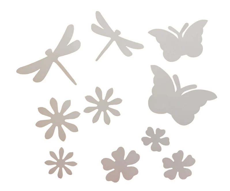 De figuren variëren allemaal van maat, maar om je een idee te geven hoe groot alles is; de grote vlinder is 12cm. breed.