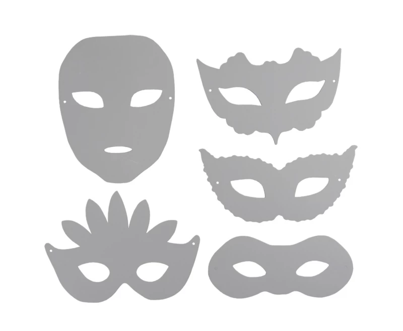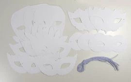 Set van 16 kartonnen maskers die je zelf kan versieren.