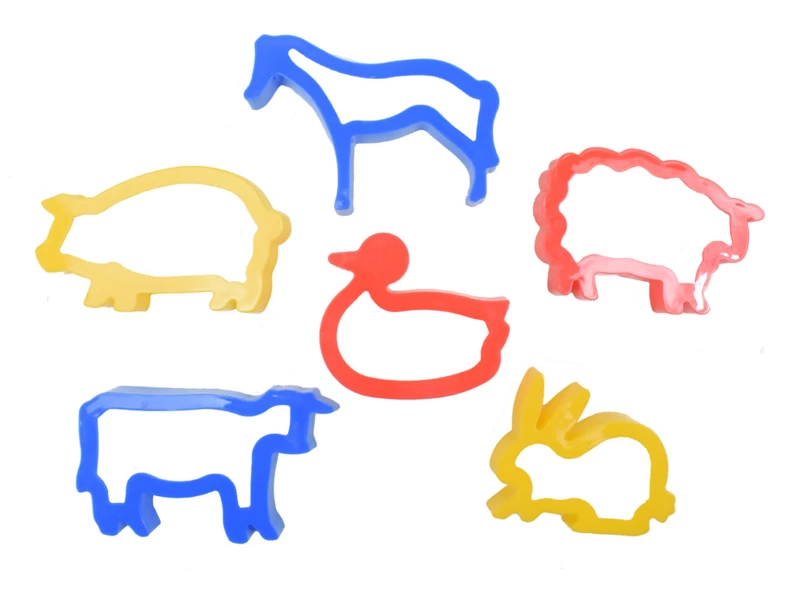 Set van 6 grote uitsteekvormen in het thema boerderijdieren.